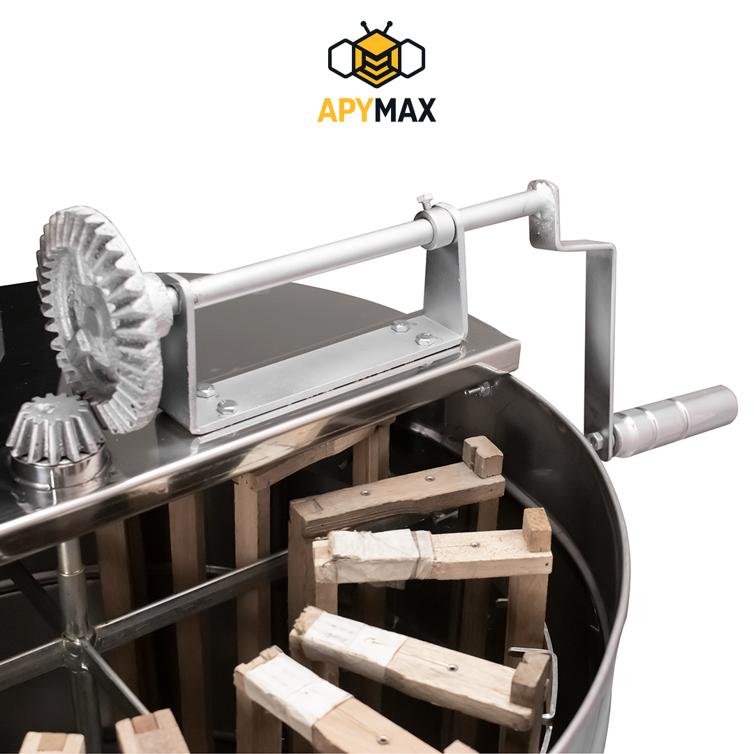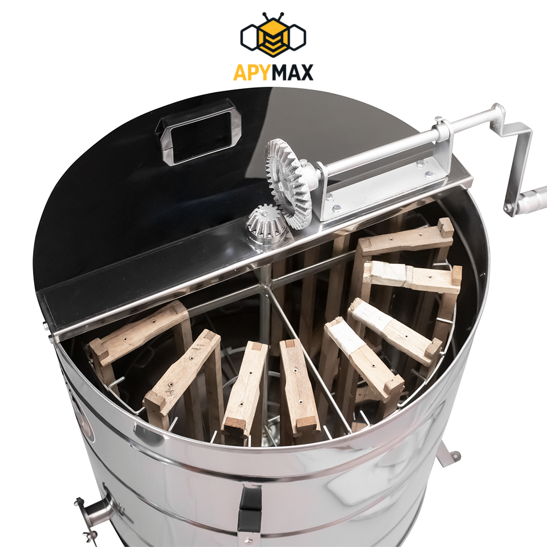 Nuestro extractor manual fue desarrollado pensando en el apicultor moderno. El innovador sistema SPEED and TORQUE, con su conjunto de engranajes (corona y piñón) de acero y la manivela lateral ergonómicamente diseñada, multiplica tu fuerza, permitiendo extraer la miel con más rapidez y menos cansancio. Los dos rodamientos en los extremos del eje del rotor aseguran un giro suave, silencioso y estable, haciendo la operación mucho más cómoda.