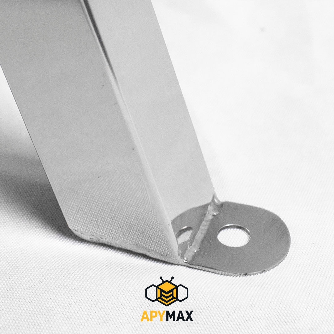 Las robustas patas de acero inoxidable (30x30mm), fijadas con tornillos inox M6, poseen una apertura de 15°, proporcionando excelente estabilidad en cualquier piso.